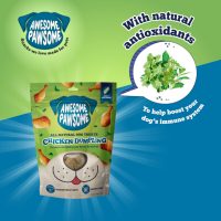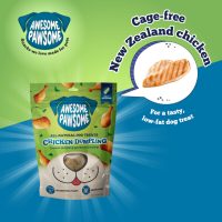Get your buddy jumping over Awesome Pawsome Chicken Dumpling, made with cage-free New Zealand chicken. With natural antioxidants and a mix of tasty herbs, Chicken Dumpling is the yummy treat that awesome dogs snack on. They’re rich in protein and easily digestible making them a special treat for dogs of all sizes and ages, so your dog can enjoy these yummy real chicken dumpling treats everyday as a tasty reward for a job well done or for just being happy to see you. Comes in convenient re-sealable pouch makes it easy to pamper your pal, even when you’re on the go.