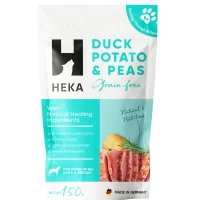 Duck (frozen, 65%), potato starch, potato protein, duck protein (dried, 2,5%), hydrolyzed protein (duck), peas (dried), monocalciumphosphate, seabuckthorn (dried), fishoil, cellulose, yeasts (dried), herbs (dried, nettle, blackberry leaves, yarrow, fennel, caraway, chamomile blossoms, mistletoe, gentian root, centaury)