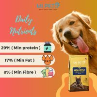 MI PETS HOLISTIC MEDIUM BREED DOG FOOD is complete and balanced nutrition for all breeds with fresh chicken and rice as major ingredients. High quality chicken protein paired with rice provides excellent nutrition for all active adults breeds . This formula supports total body nutrition and vegetable fibers aid in good digestion . The product is formulated and designed by our veterinarians and nutritionist . Who are having more than 36 years of experience in pet food product development in USA and European countries . The product is especially designed to meet the standards of Association of American feed control officials ( AAFCO ).