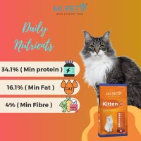 MI Pets Kitten Cat Food is complete and balanced Nutrition for All Breeds. The product is formulated and designed by our veterinarians and nutritionists professional who are having experience of more the 36 years in pet food product development in LISA & Europena Market. The product is especially designed to meet the Standard of Association of American feed Control. Official ( AAFCO)