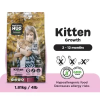 Nature’s HUG™ Kitten Growth recipe will help your little protégé grow into a strong, playful, healthy adult cat. It has been formulated to meet all of its nutritional needs. The small kibbles are thin and appealing to the kitten!