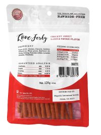 Rawhide free treats. With lycopen, glucosamine and chondroitin. Easyto digest. Low fat. 100% cage free chicken. Made in Thailand.