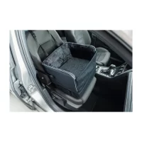 The Trixie Car Seat for Pets puts safety first. It is a raised car seat with a stable form and nylon covering. It holds your pet steady and is good for long journeys in the car. A slit for the belt allows you to buckle your dog in and a short leash attachment keeps your pet from jumping out. It has a non-slip bottom. The cushion and seat cover can be removed for cleaning. The pocket in front allows you to store some small essentials.